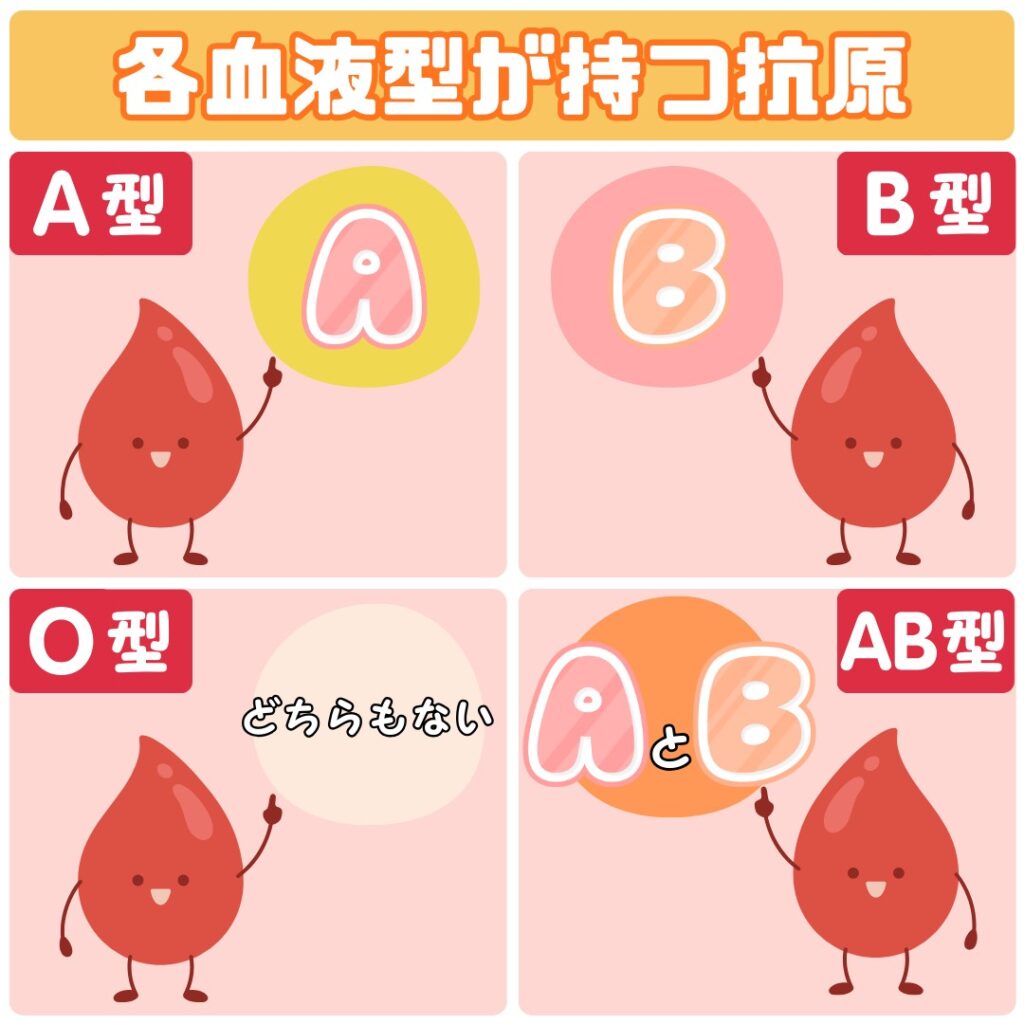 ポイントは、赤血球の表面にある「抗原(こうげん)」という小さな目印。